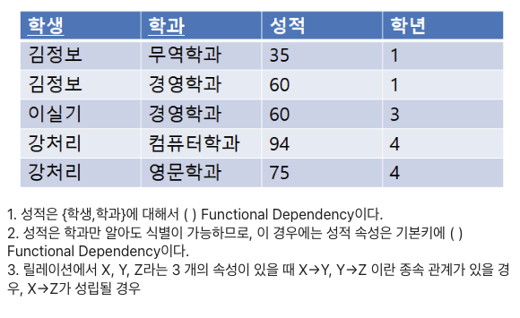 데이터베이스를 잘못 걸계하면 불필요한 데이터 중복이 발생하여 데이터의 삽입/수정/삭제 연산을 수행할 때 부작용들이 발생할 수 있다. 이러한 부작용을 이상(anomaly) 현상이라고 한다. 이상 현산을 제거하면서 데이터베이스를 올바르게 설계해 나가는 과정이 정규화이다.