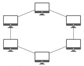 데이터는 노드에서 노드로 이동을 하게 되며, 각각의 노드는 고리 모양의 길을 통해 패킷을 처리합니다. 노드 수가 증가되어도 네트워크상의 손실이 거의 없고 충돌이 발생되는 가능성이 적고 노드의 고장 발견을 쉽게 찾을 수 있습니다. 하지만 네트워크 구성 변경이 어렵고 회선에 장애가 발생하면 전체 네트워크에 영향을 크게 끼치는 단점이 있습니다.