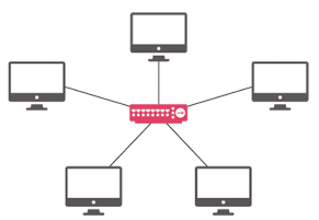 - 중앙 노드(예 : 스위치나 허브)에 모든 다른 노드가 연결됩니다.