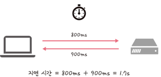 지연 시간(latency)이란 요청이 처리되는 시간을 말하며 어떤 메시지가 두 장치 사이를 왕복하는 데 걸린 시간을 말합니다.